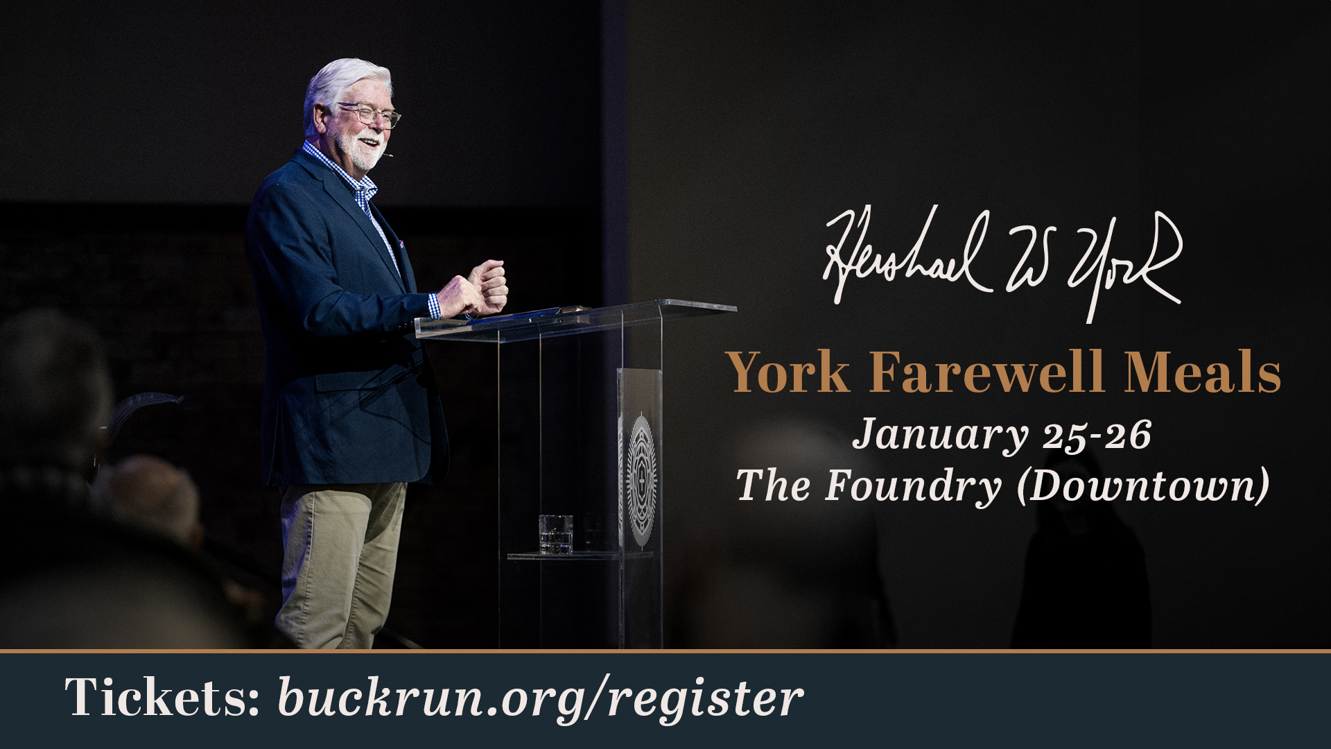 Join Dr. York and Mrs. Tanya for a meal at the Foundry in downtown Frankfort as we celebrate their 20 years of ministry at Buck Run. These events will provide a smaller setting for you to spend time honoring the Yorks and sharing with them the influence they have had on your life. You can purchase tickets for the meal time of your choice at the link below.