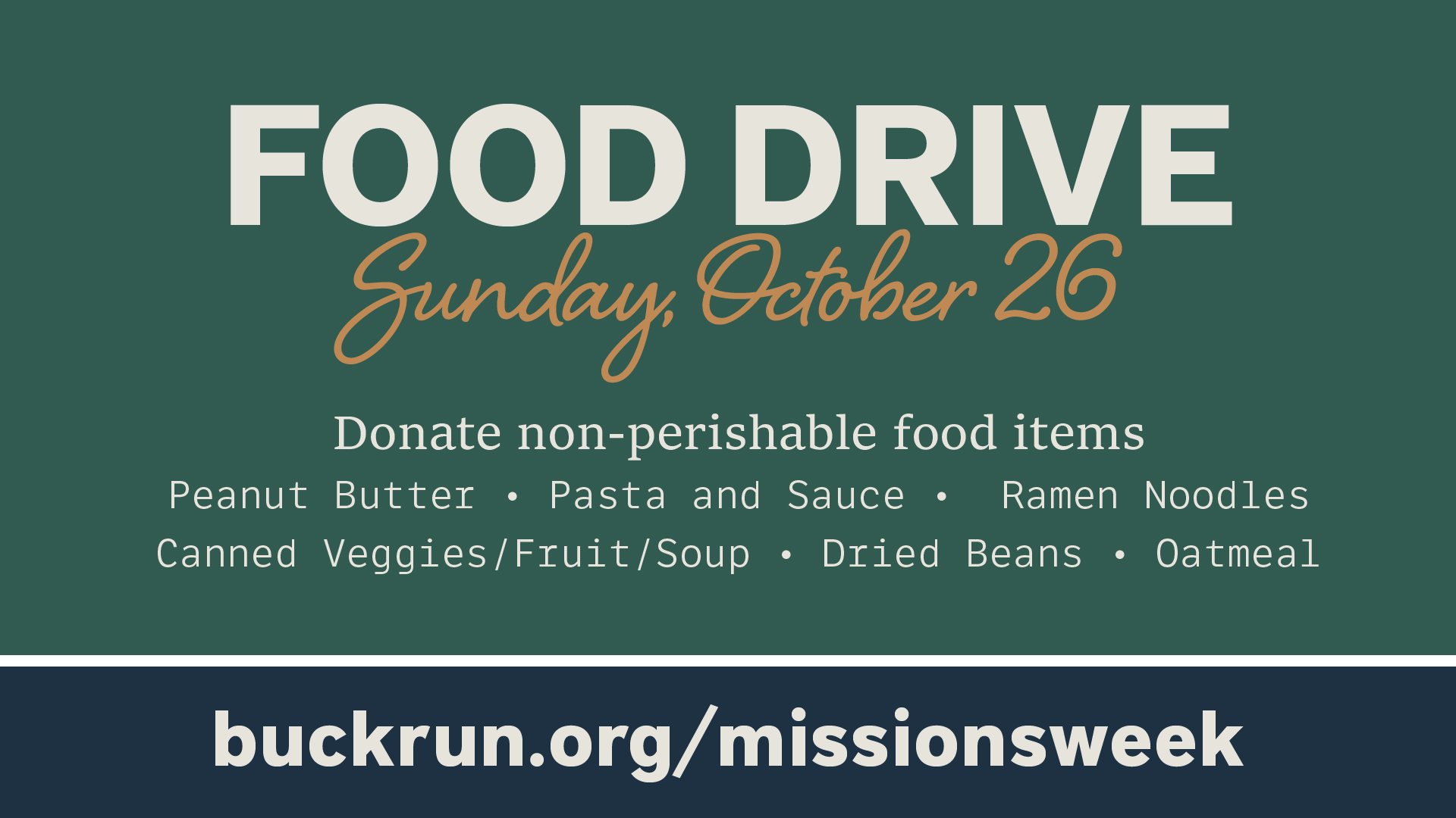 On Sunday, October 26, we will collect non-perishable food items for the Emergency Community Food Pantry of Franklin County. The food pantry exists in partnership with other organizations, like Buck Run, to assist those in Frankfort facing food insecurity.