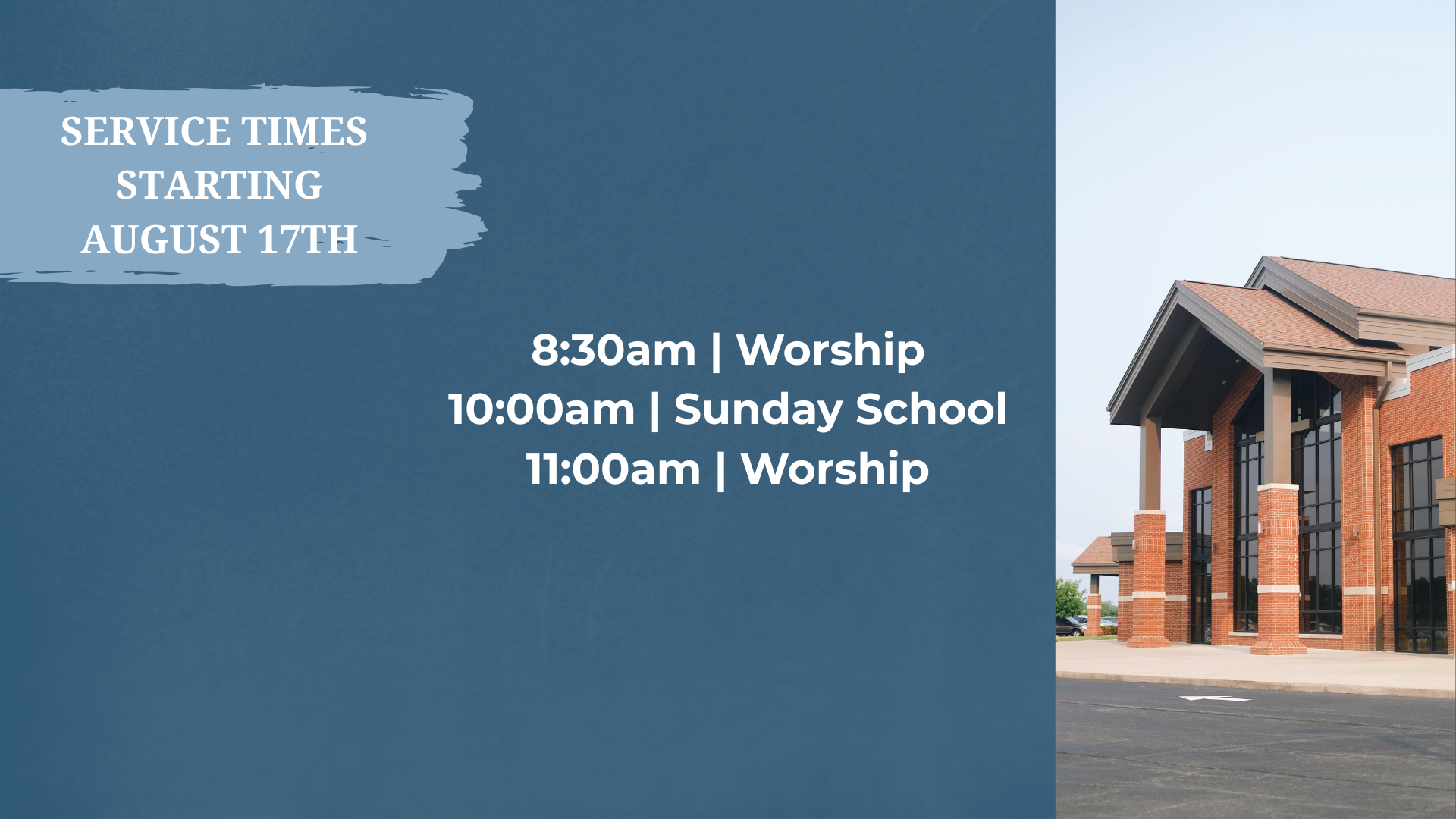 We're excited to announce that beginning August 17th, we will have two worship services each week. Our new schedule will be: 8:30am - Worship 10:00am - Sunday School 11:00am - Worship To continue to reach more people, we will need all to faithfully and regularly service. To begin a conversation about finding your place to…