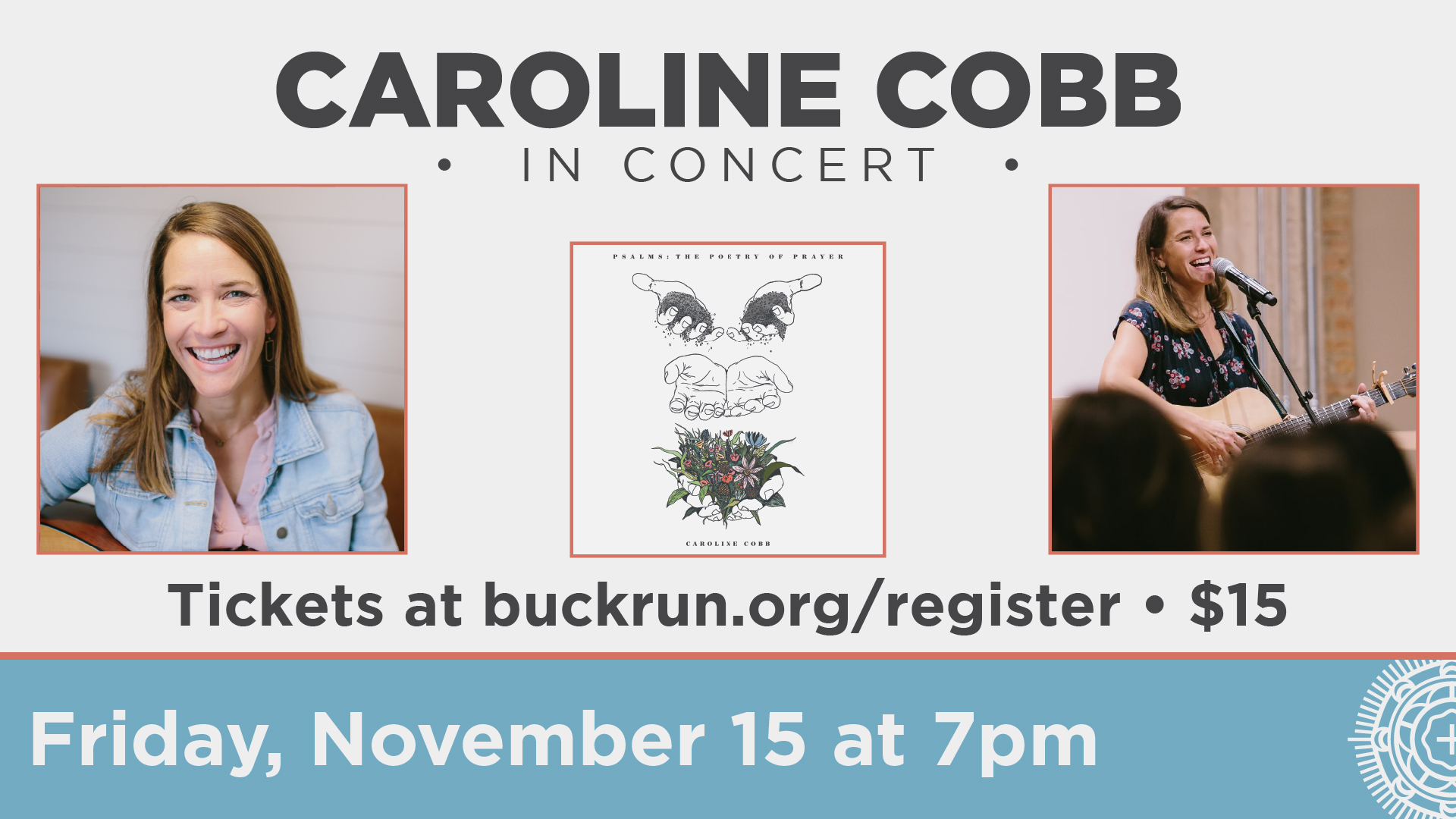 Join us on Friday, November 15 at 7:00 pm for an evening with singer/songwriter Caroline Cobb walking through the story of the Gospel through song and worship. Tickets are $15 and can be purchased here.
